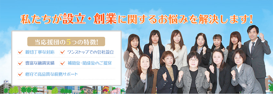 | 2. | 貴社に最も合った定款の作成 | 6. | 補助金、融資のご提案 |
