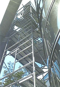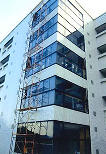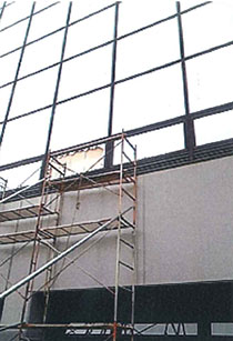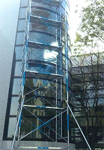高所作業車を使ってガラス施工作業中(オペレーター付)